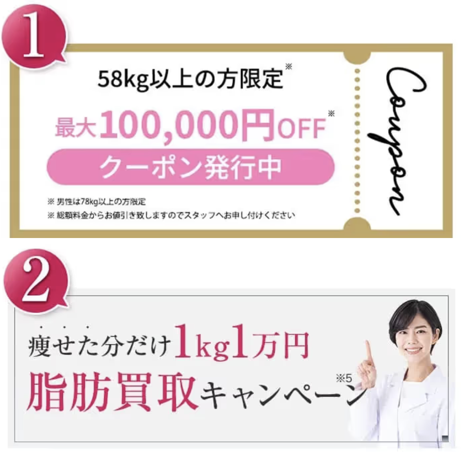 15ヶ月分0円 1kg1万円で脂肪買取 ※申し込みページ内に適用条件を記載しています。 ※他キャンペーン併用不可 |
